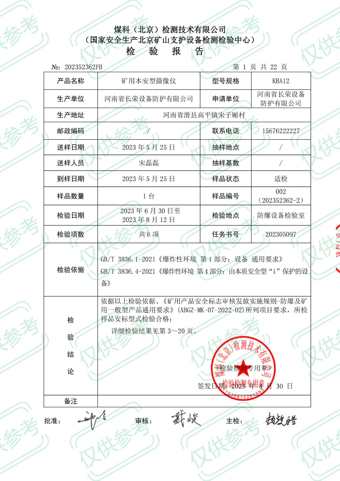 礦用本安型攝像儀檢 驗 報 告ExibIMb