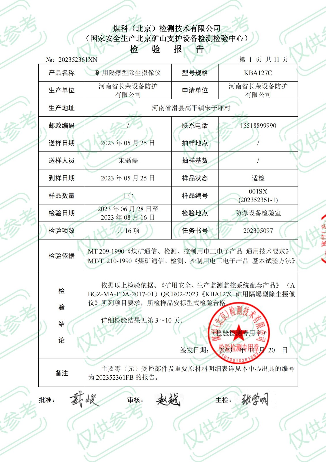礦用隔爆型除塵攝像儀KBA127C防爆合格證